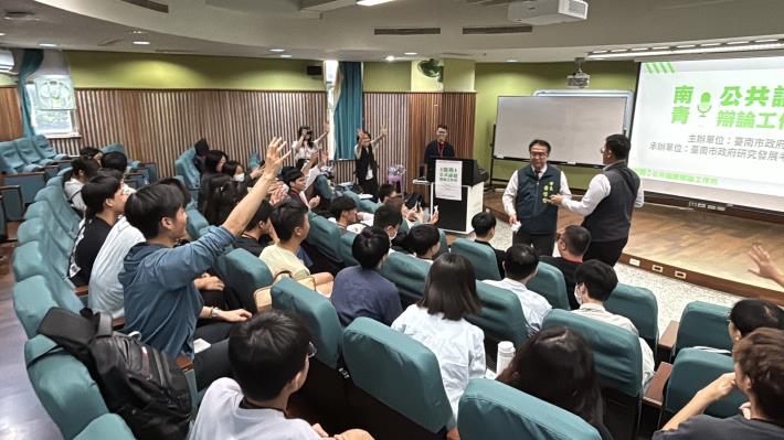 臺南市政府致力推動青年公共參與多元發展,為培養青年理性思辨與公共參與能力,研考會於8月30日至31日假國立成功大學舉辦「南青公共議題辯論工作坊」,市長黃偉哲親自出席,支持青年學子透過議題思辨關心公共事務,現場更開放提問,與學生們互動熱烈。