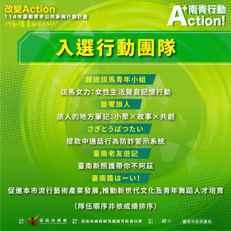 114年臺南青年公共參與行動計畫