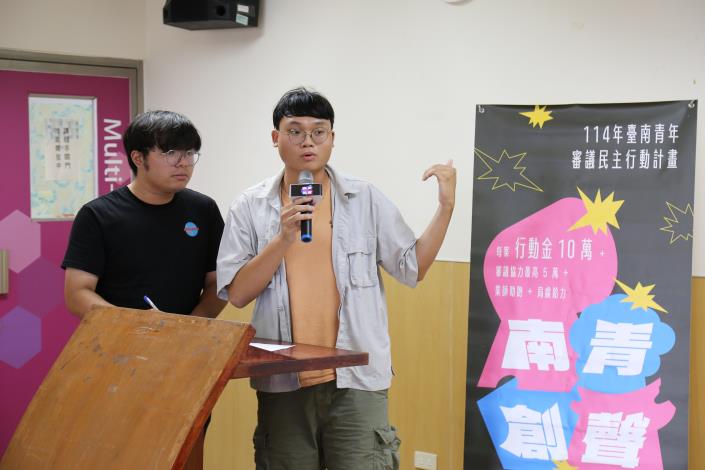 研考會指出,本次審議民主團隊徵選吸引9組優秀的青年團隊參與提案,評審陣容則邀請具有審議民主與數位創新專長的學者與實務工作者,包括臺大社會系林國明教授、臺南大學行管系王光旭教授、台南社大社會溝通小組召集人呂家華、「好想工作室」負責人吳展瑋,以及兩位市府代表委員。評選標準著重於議題實踐性與創新潛力,最終脫穎而出的5組團隊,將分別於左鎮、新化、北區與東區等地展開行動,聚焦社會關注熱點,推動地方公共議題的深度對話與審議。